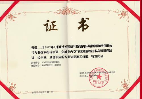 室內空氣檢測治理技術證書